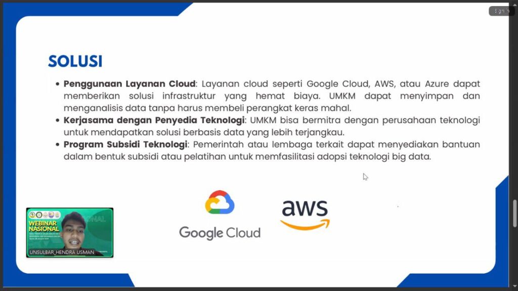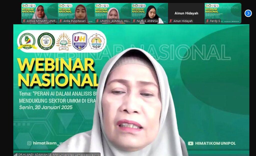Himpunan Mahasiswa Program Studi Teknik Informatika (HIMATIKOM) Universitas Lamappapoleonro sukses menyelenggarakan Webinar Nasional bertajuk “Peran AI dalam Analisis Big Data untuk Mendukung Sektor UMKM di Era Digital”. Kegiatan ini menjadi wadah strategis untuk memperluas wawasan mahasiswa, akademisi, serta pelaku Usaha Mikro, Kecil, dan Menengah (UMKM) dalam menghadapi tantangan transformasi digital. Webinar nasional ini dibuka secara resmi oleh Rektor Universitas Lamappapoleonro, Dr. Hj. Andi Adawiah, S.E., M.M.