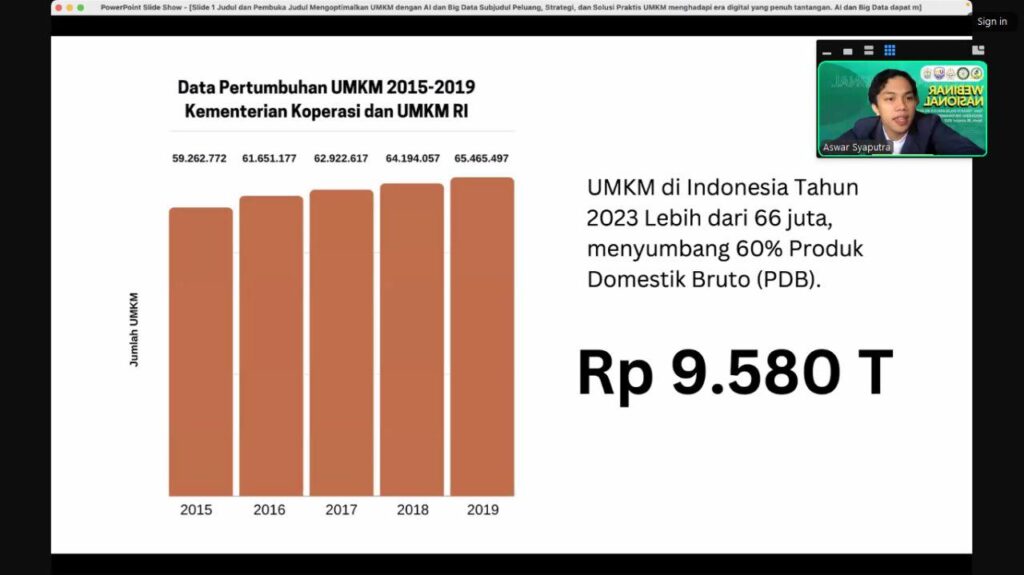 Dalam sambutannya, Rektor menegaskan bahwa pemanfaatan teknologi informasi, khususnya kecerdasan buatan (Artificial Intelligence/AI) dan big data, merupakan faktor penting dalam mendorong pertumbuhan dan keberlanjutan UMKM di era digital.