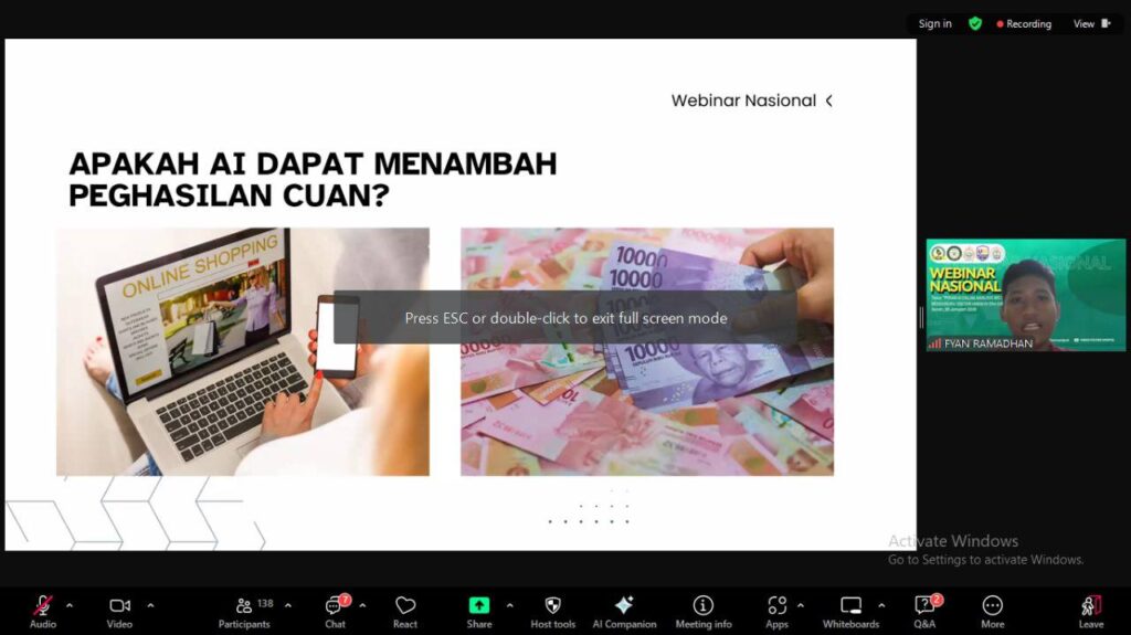 Para narasumber menjelaskan bagaimana teknologi AI dan analisis big data dapat dimanfaatkan untuk memahami perilaku konsumen, memprediksi tren pasar, meningkatkan strategi pemasaran digital, serta mengoptimalkan pengelolaan usaha UMKM secara berbasis data.