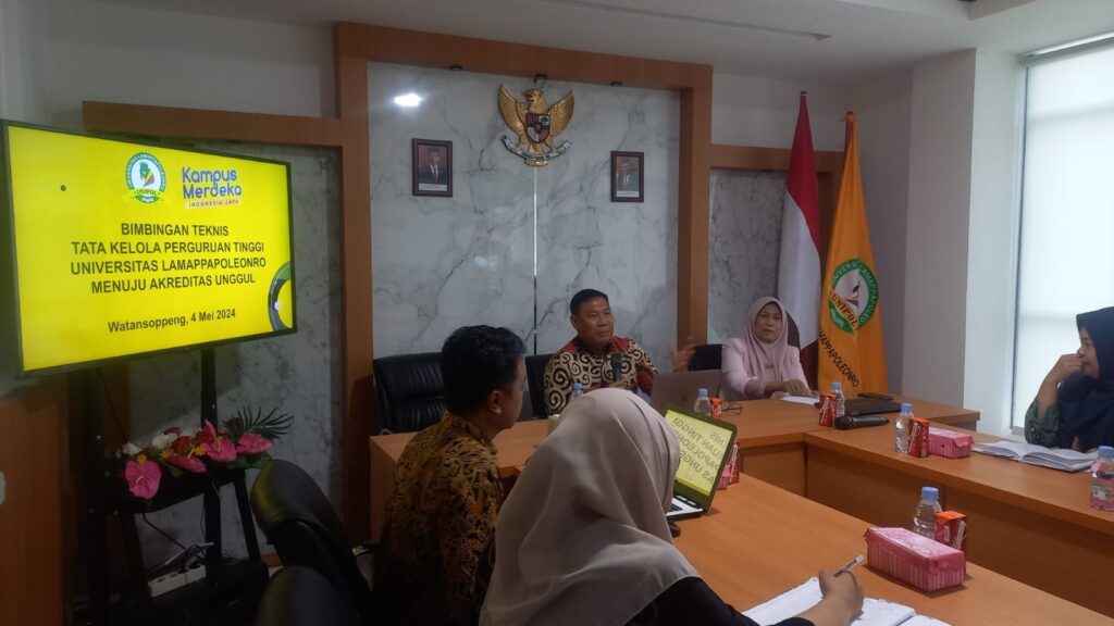 Sabtu, 04 Mei 2024 — Universitas Lamappapoleonro melaksanakan kegiatan Bimbingan Teknis (Bimtek) Tata Kelola Perguruan Tinggi dengan mengusung tema “Universitas Lamappapoleonro Menuju Akreditasi Unggul.” Kegiatan ini merupakan bagian dari komitmen institusi dalam meningkatkan mutu tata kelola perguruan tinggi secara berkelanjutan.
