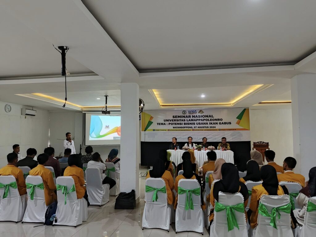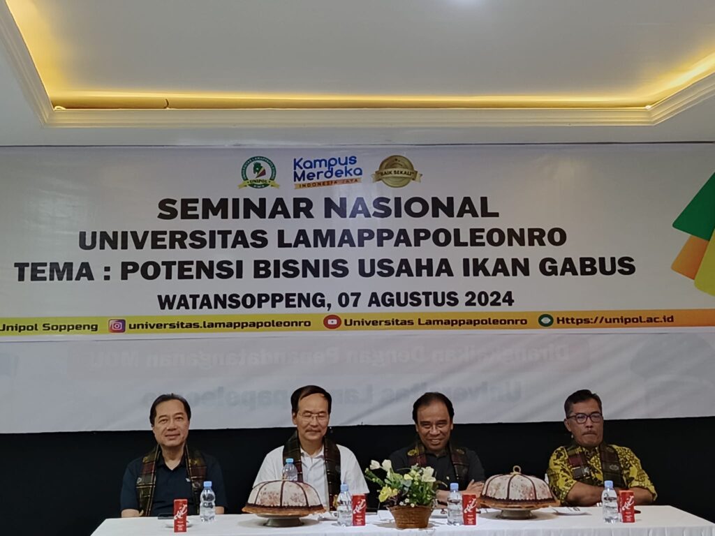 Universitas Lamappapoleonro (UNIPOL) kembali menunjukkan perannya sebagai motor penggerak potensi daerah melalui gelaran Seminar Nasional bertajuk “Potensi Bisnis Usaha Ikan Gabus”. Kegiatan yang berlangsung pada Rabu, 7 Agustus 2024 ini digelar secara meriah di Aula Kampus 1 UNIPOL.