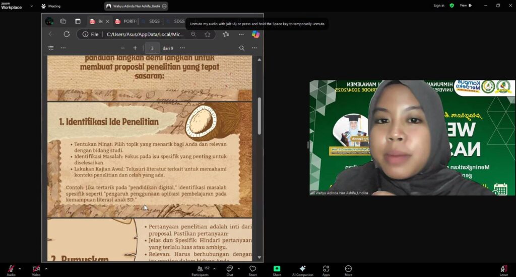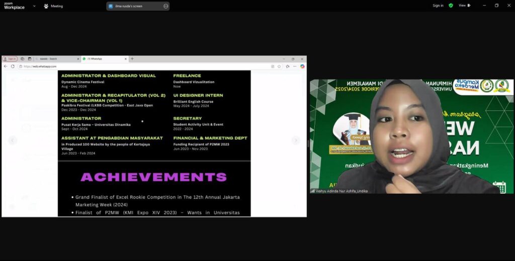 Himpunan Mahasiswa Program Studi Manajemen Universitas Lamappapoleonro sukses menyelenggarakan Webinar Nasional dengan tema “Meningkatkan Peran Mahasiswa dalam Mewujudkan Generasi yang Kreatif dan Kompeten”. Kegiatan ini dilaksanakan sebagai upaya memperluas wawasan, meningkatkan kapasitas, serta memperkuat peran strategis mahasiswa dalam menghadapi tantangan global dan dunia kerja yang semakin kompetitif.