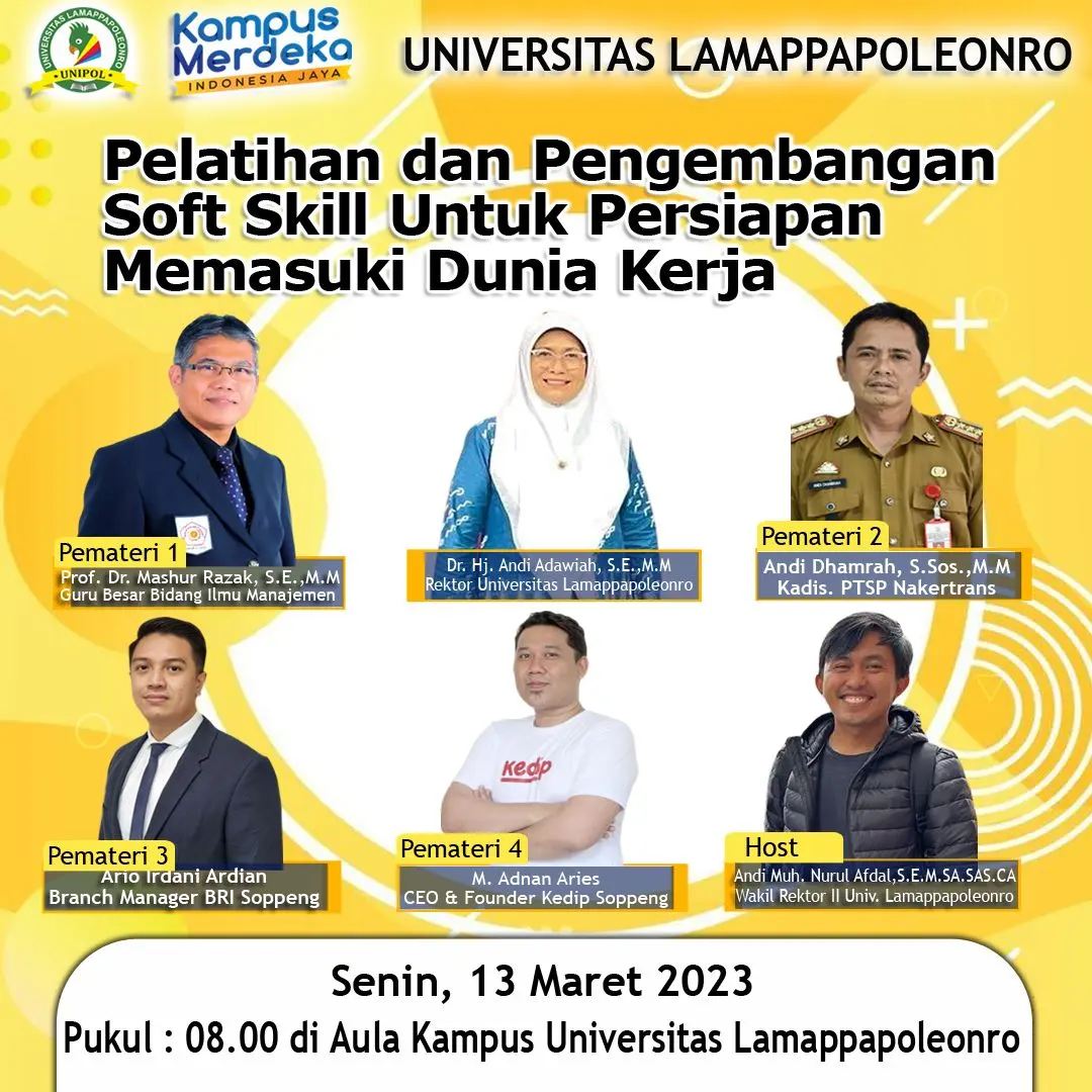 Universitas Lamappapoleonro mendapatkan penghargaan Delegasi Terbaik pada Pemilihan Duta Kampus Sulawesi Selatan Tahun 2023. Penghargaan ini diterima langsung oleh Ibunda Rektor Dr. Hj. Andi Adawiah, S.E.,M.M pada malam Grand Final…