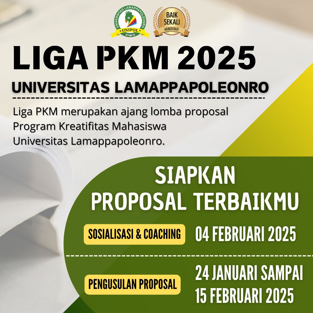 Liga PKM (Program Kreativitas Mahasiswa) sudah dibuka. Saatnya menunjukkan ide dan karya terbaikmu untuk berkontribusi bagi masyarakat serta meraih prestasi di tingkat nasional! Ayo segera siapkan Proposal dan tim terbaikmu.