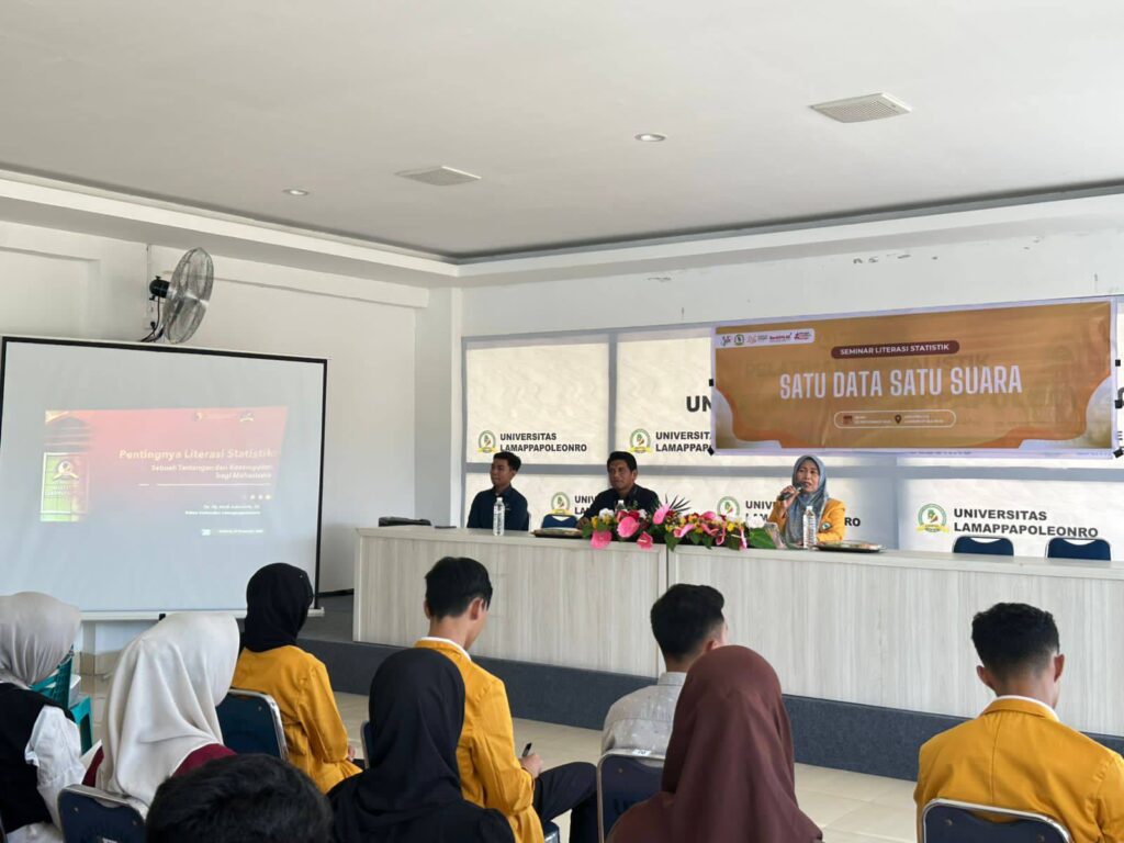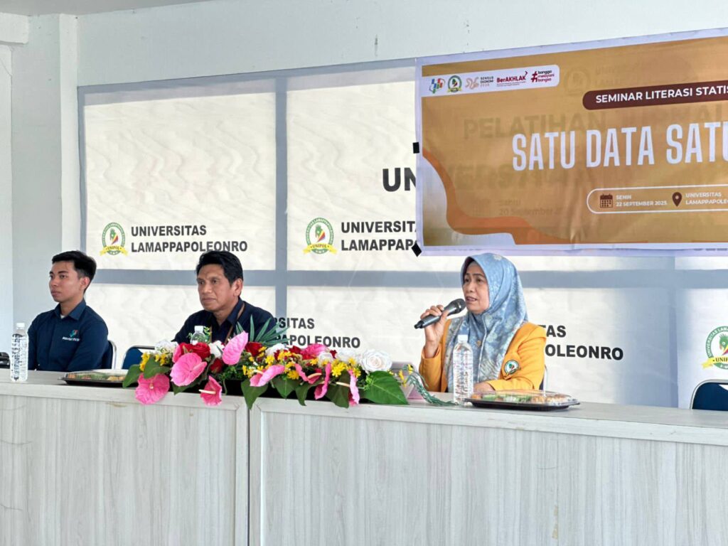 Universitas Lamappapoleonro (Unipol) bekerja sama dengan BPS Kabupaten Soppeng menggelar Seminar Literasi Statistik 2025 dengan Tema Satu Data Satu Suara di Aula Kampus Unipol, Jl. Salotungo, Senin (22/9/2025). Kegiatan ini bertujuan meningkatkan pemahaman tentang pentingnya literasi statistik baik dalam kehidupan sehari-hari maupun dalam perumusan kebijakan publik.
